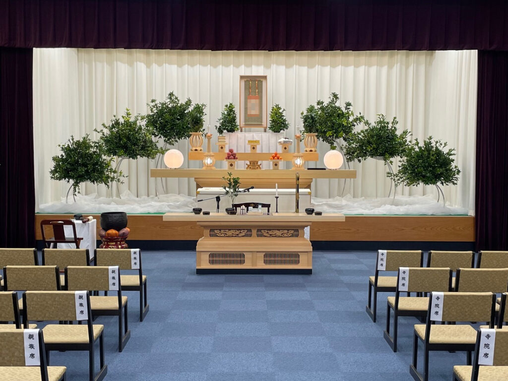葬儀に関しては、現住職様より自防で寺葬を執り行うには狭く多くの方に参列していただくことができないので、お越しいただく僧侶の方々を含め100名程の会葬者様を収容できる交通の便のよい式場はないかとのご相談がありました。その為、ご寺院様からも近く交通の便の良い楠会館をご案内させていただきました。